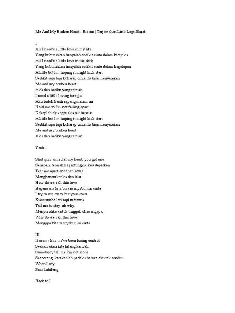 Dunia Lirik Me And My Broken Heart Rixton Lirik Terjemahan Indonesia Facebook