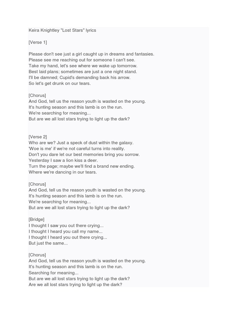 When Quotes Take Over 7 Lost Stars Begin Again Lost Stars Lost Stars Lyrics Lyrics