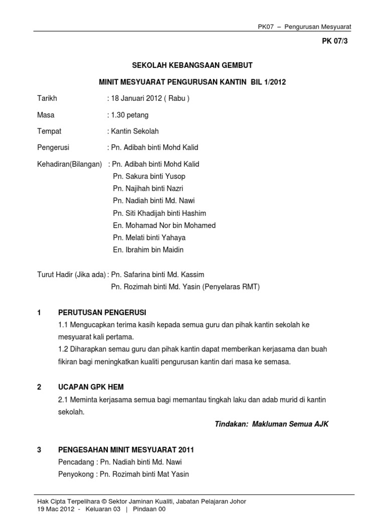 Minit Mesyuarat Pengurusan Pentadbiran 2020 Bil 1 2020 Pages 1 12 Text Version Anyflip
