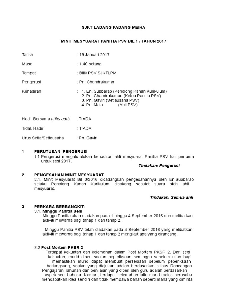 327277998 Minit Mesyuarat Panitia Psv Kali Pertama 2016