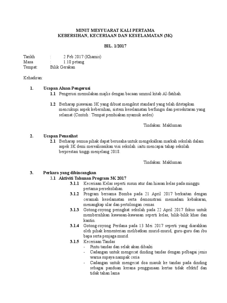 Contoh Minit Mesyuarat Kali Kedua Wall Ppx