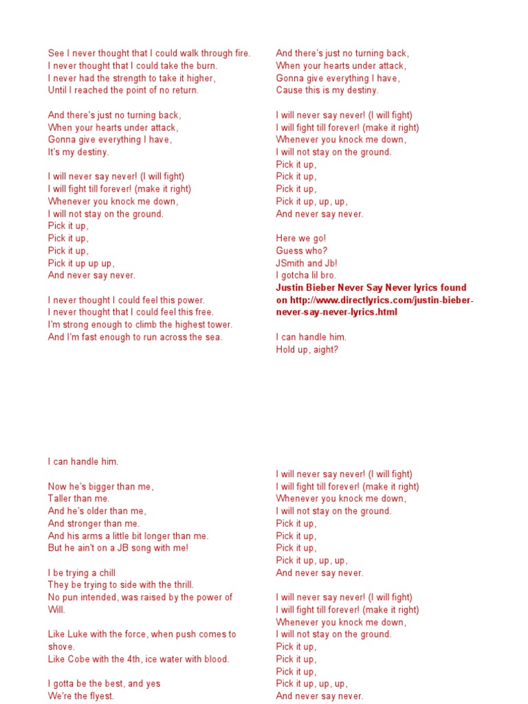 Lagu Justin Bieber Never Say Never Lyrics Daedalusdrones Com