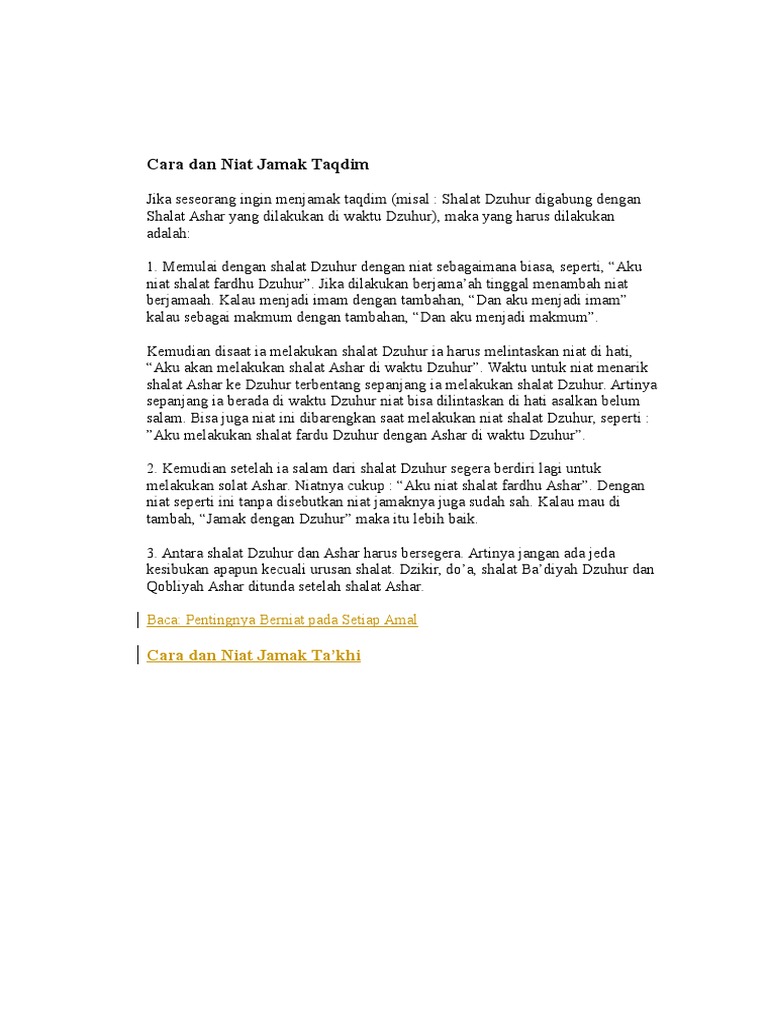 Berikut Ini Bacaan Niat Shalat Jamak Taqdim Dan Takhir Docx