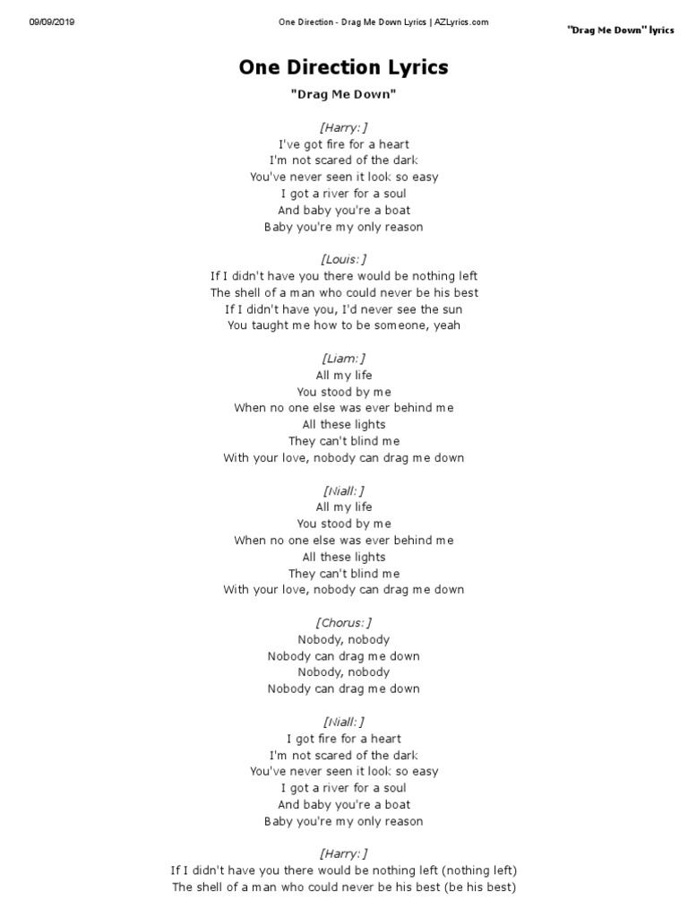 One Direction Drag Me Down Lyrics Azlyrics Com