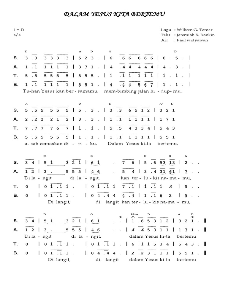 Not Angka Dalam Yesus Kita Bersaudara Koleksi Not Angka