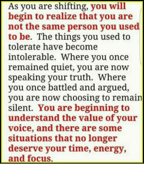 As You Are Shifting You Begin To Realize You Are Not The Same Person You Used To Be The Things You Used To Tolerate Have N Words Positive Quotes Wisdom Quotes
