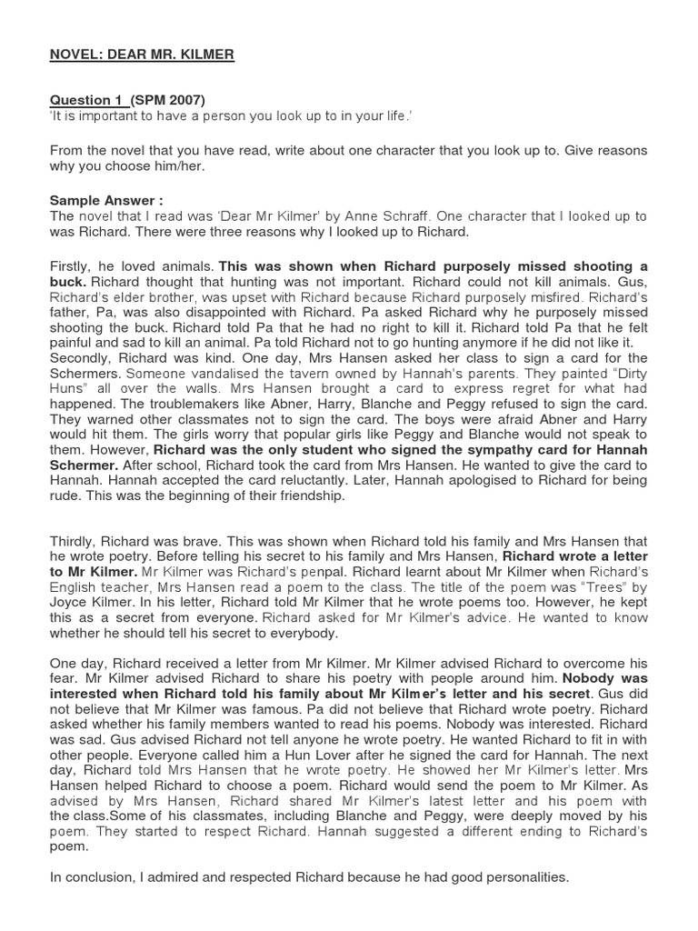 2018 Sample Answers Dmk Pdf Sample Answers For Dear Mr Kilmer Sabah Kudat The Novel I Have Studied Is Dear Mr Kilmer By Anne Schraff The Novel Is Course Hero