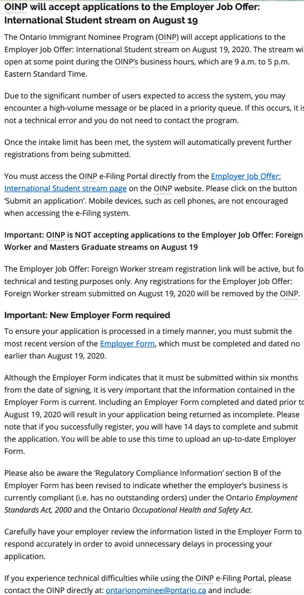 Tamara M K S Tweet Oinp Will Accept Applications To The Employer Job Offer International Student Stream On August 19 Pnp Oinp Cndimm Ontario Trendsmap