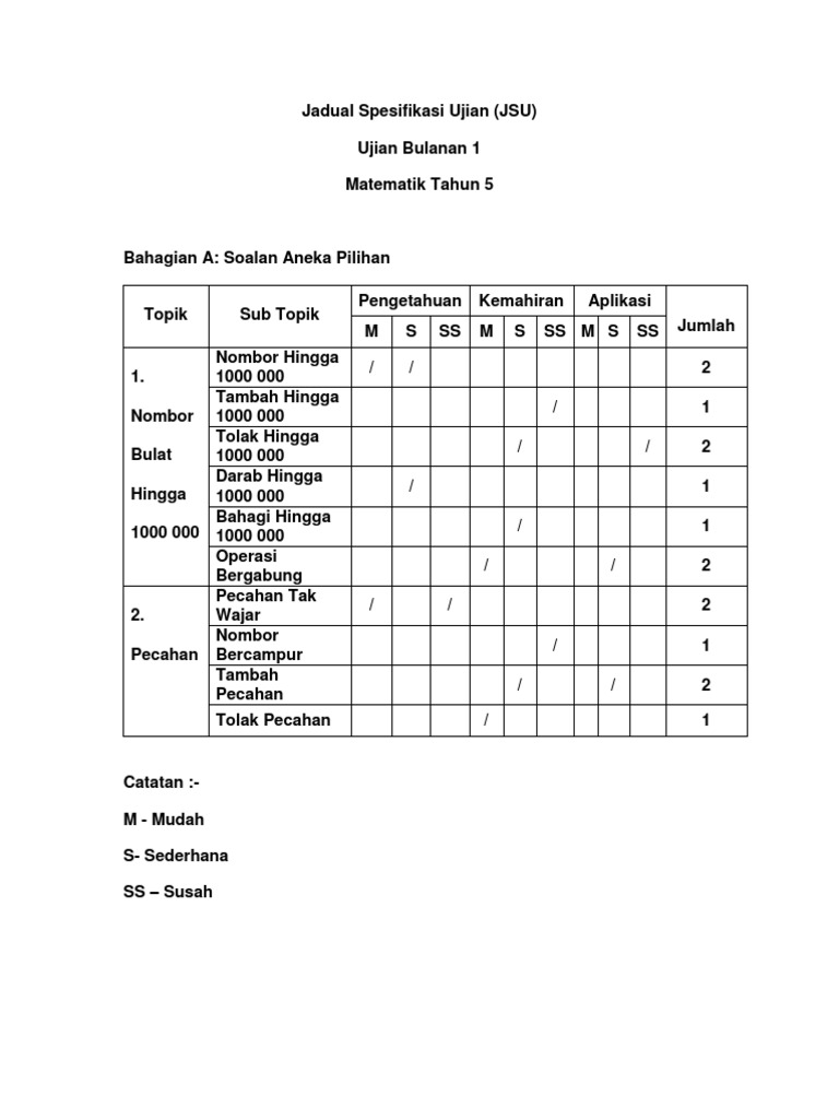 Jadual Spesifikasi Ujian Tahun 5