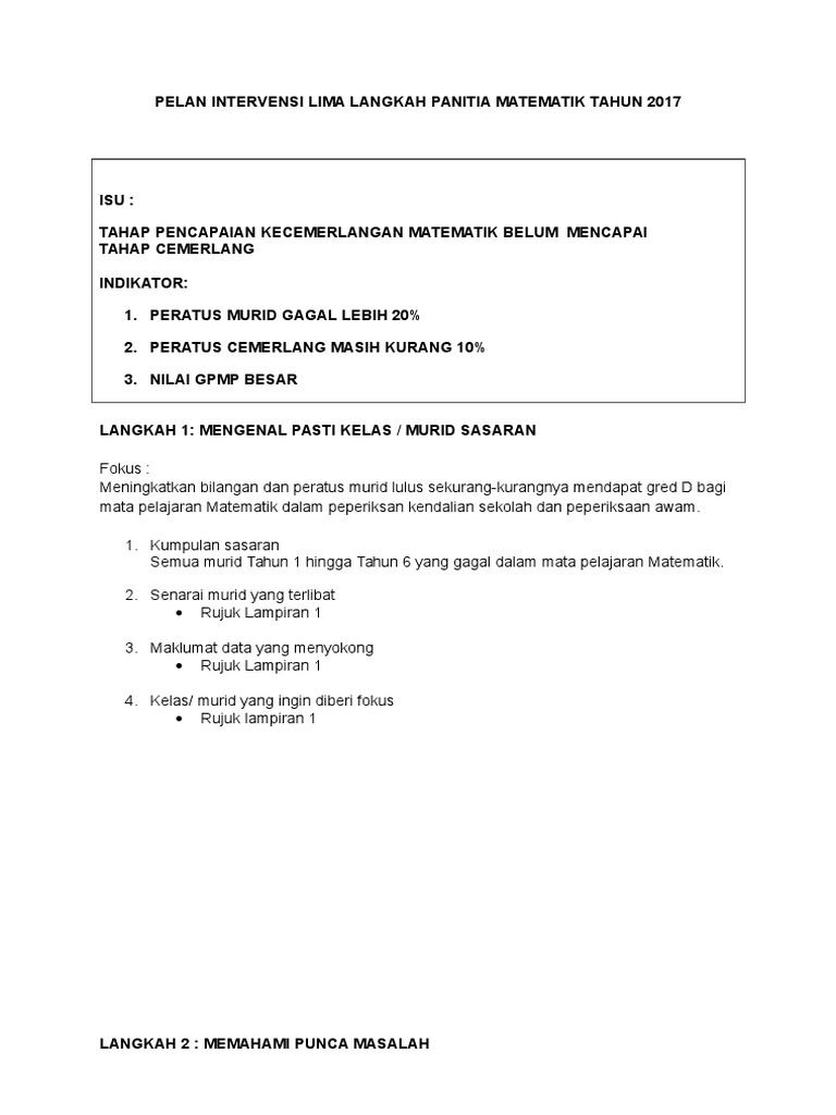 Doc Pelan Intervensi Lima Langkah Amirul Amzar Academia Edu