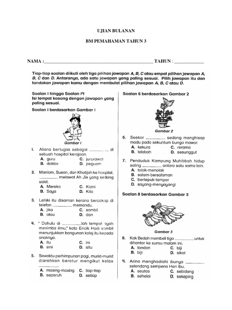 Soalan Bm Bahasa Melayu Pemahaman Tahun 1 K6nqgxde024w