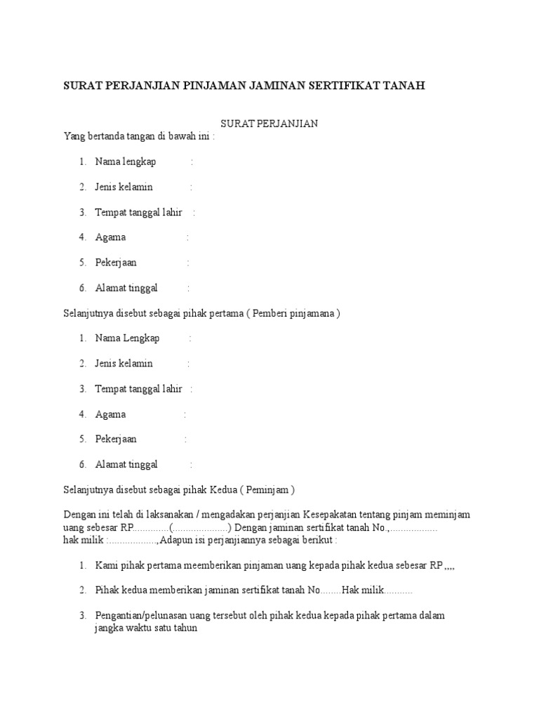 Setelah saya mendaftar dua kali dari berbagai pemberi pinjaman pinjaman yang mengaku sebagai kreditur di sini forum ini. Berikut ini contoh surat yang baik dan benar serta menarik perhatian yang dapat anda gunakan dalam tema maupun format penulisan surat. Contoh surat kuasa jaminan pinjaman contoh surat kuasa tanah untuk jaminan pinjaman sekarang ini ada banyak orang yang meminjam dana ke bank atau lembaga keuangan lainnya untuk berbagai keperluan. Surat perjanjian hutang piutang dibawah ini bisa anda modifikasi isi dan klausanya sesuai kondisi dan kesepakatan antara pihak yang mengikatkan diri dalam perjanjian hutang piutang tersebut.