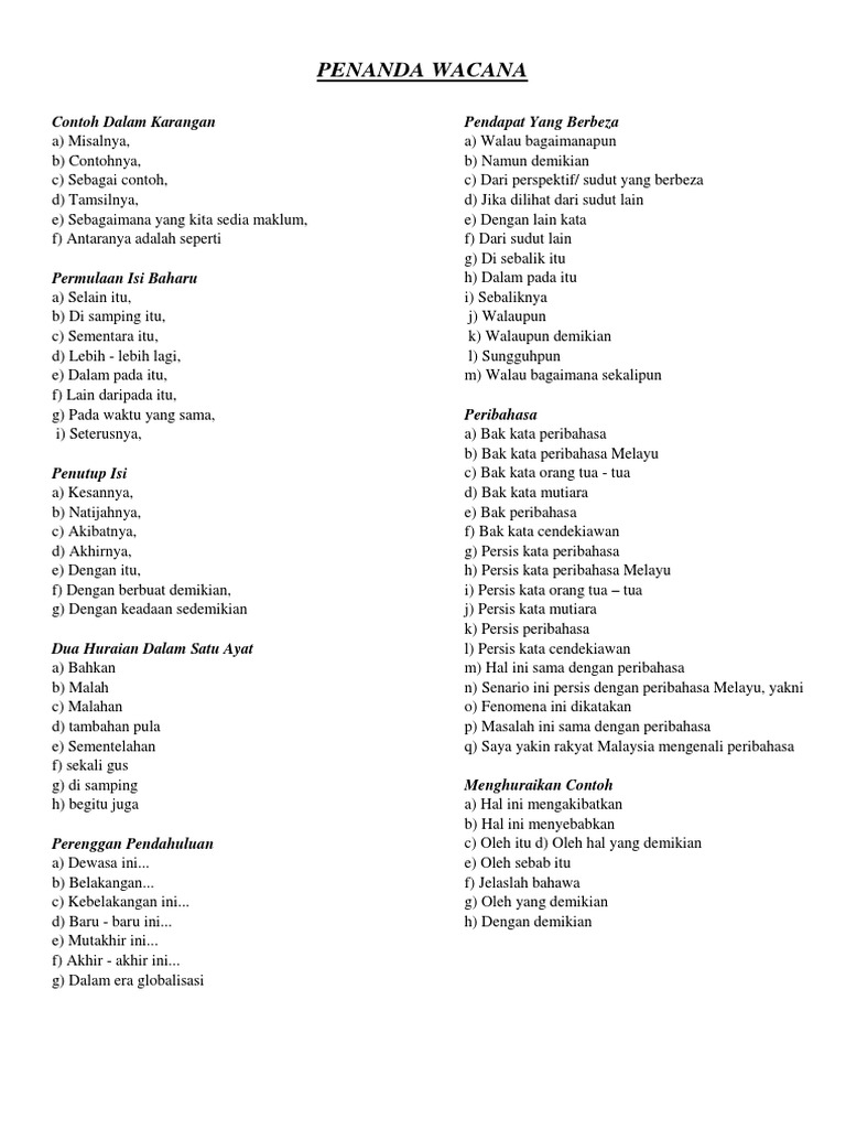 Penanda Wacana Contoh Dalam Karangan Pendapat Yang Berbeza