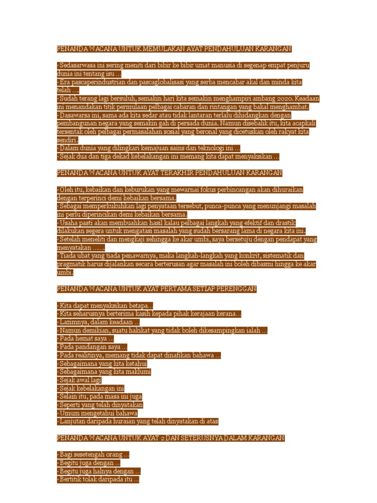 Penanda Wacana Untuk Memulakan Ayat Pendahuluan Karangan