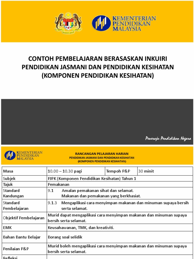 Contoh Pembelajaran Berasaskan Inkuiri Pendidikan Jasmani Dan Pendidikan Kesihatan Komponen Pendidikan Kesihatan