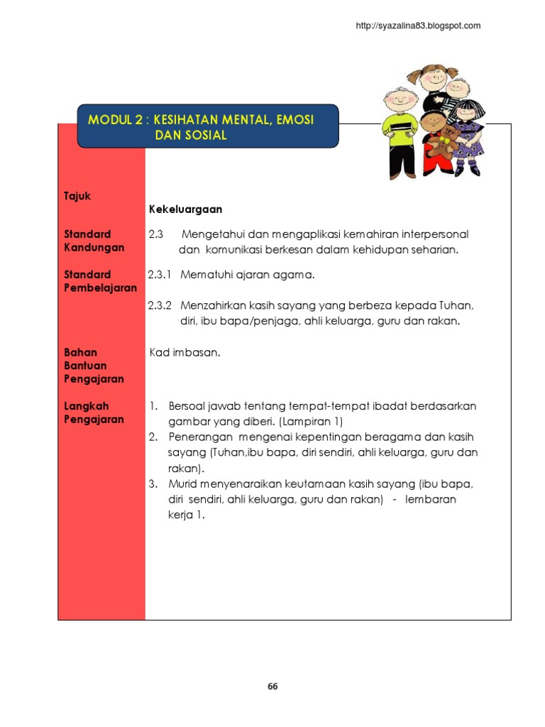Modul 2 Kesihatan Mental Emosi Dan Sosial Tajuk Kekeluargaan Standard Kandungan Standard Pembelajaran