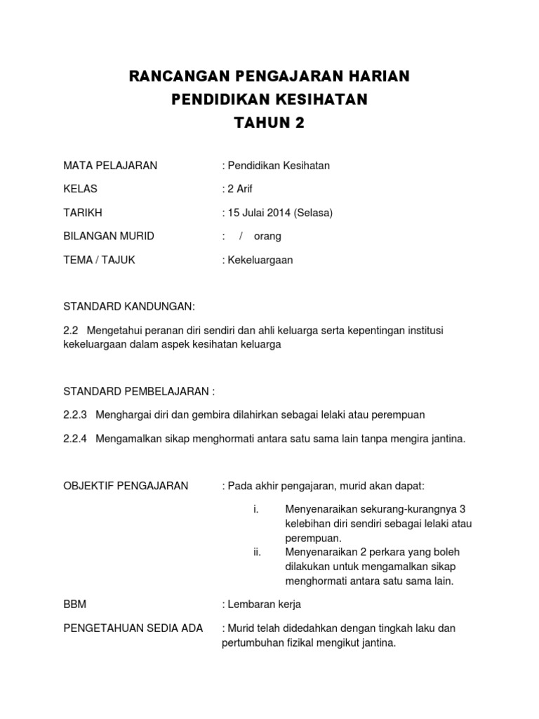 Rph Pk Tahun 2 Pendidikan Kesihatan Sumber Pendidikan 21 Kekeluargaani