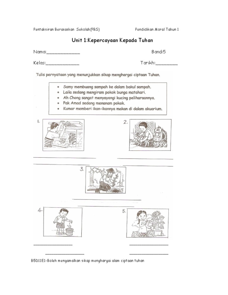Insrument Pbs Kssr Pendidikan Moral Tahun 1 Kepercayaan Kepada Tuhan Band 5