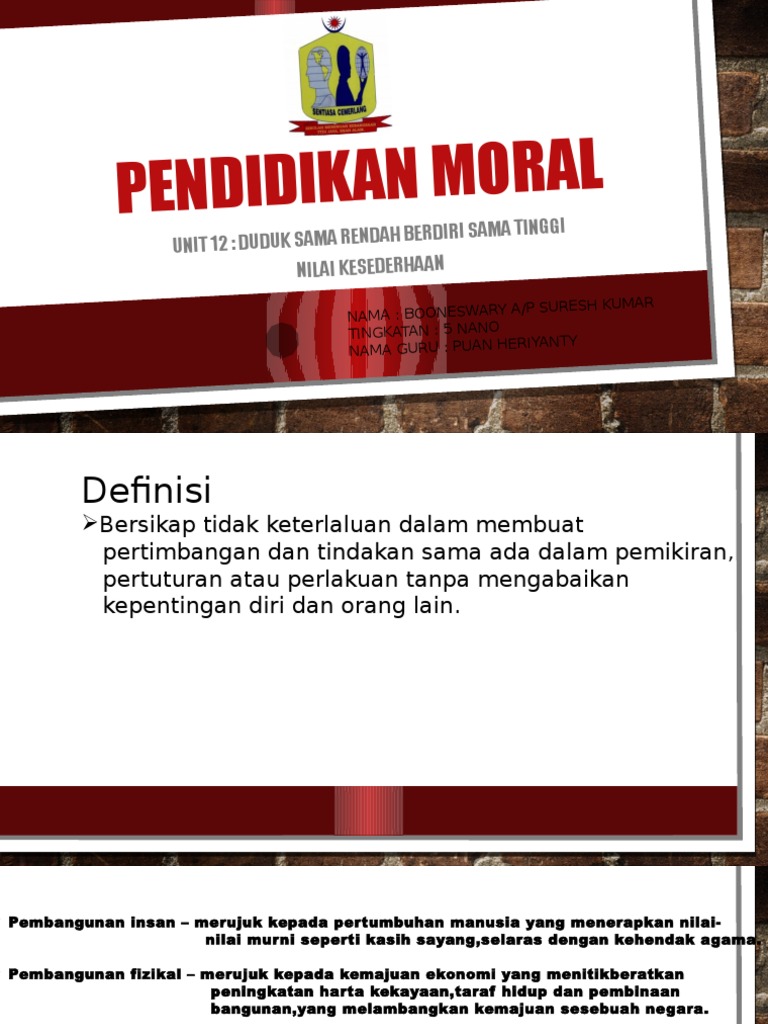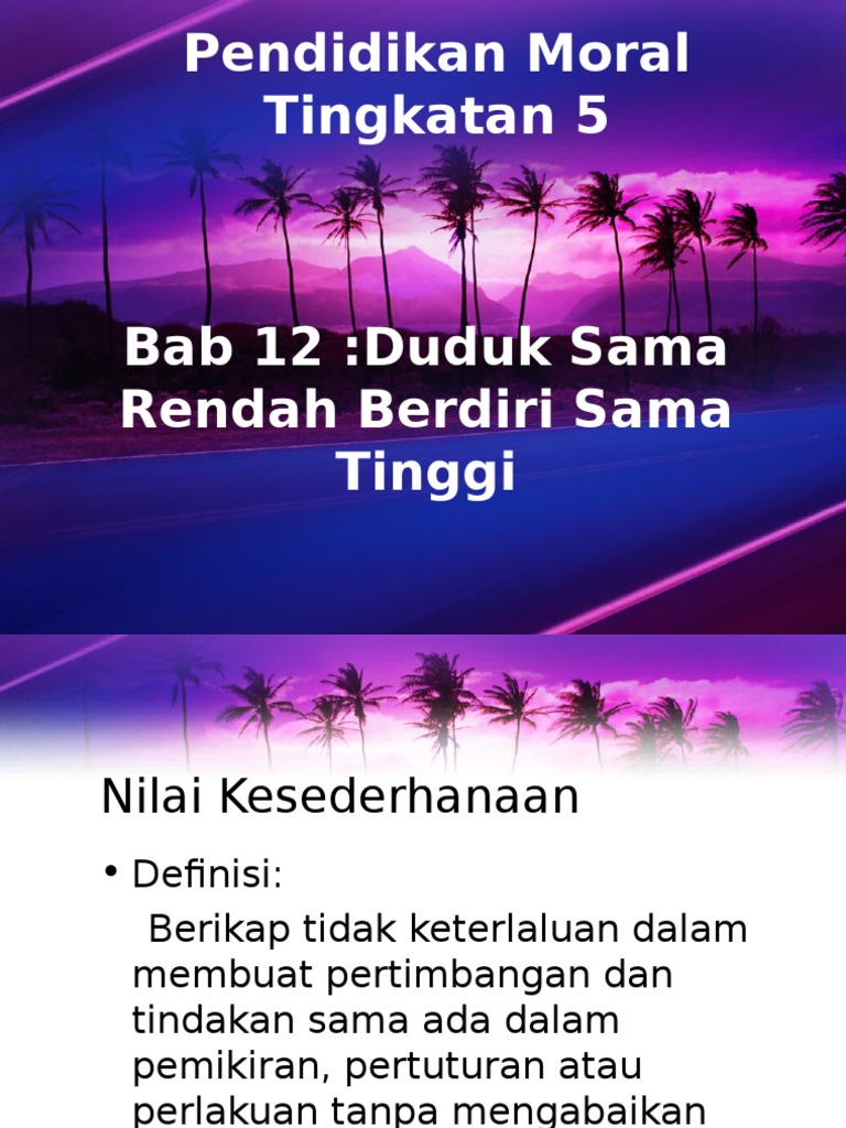 Pendidikan Moral Unit 12 Kesederhanaan Cerminan Kemuliaan
