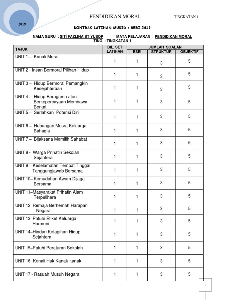 Rancangan Tahunan Pendidikan Moral Tingkatan 1 2016