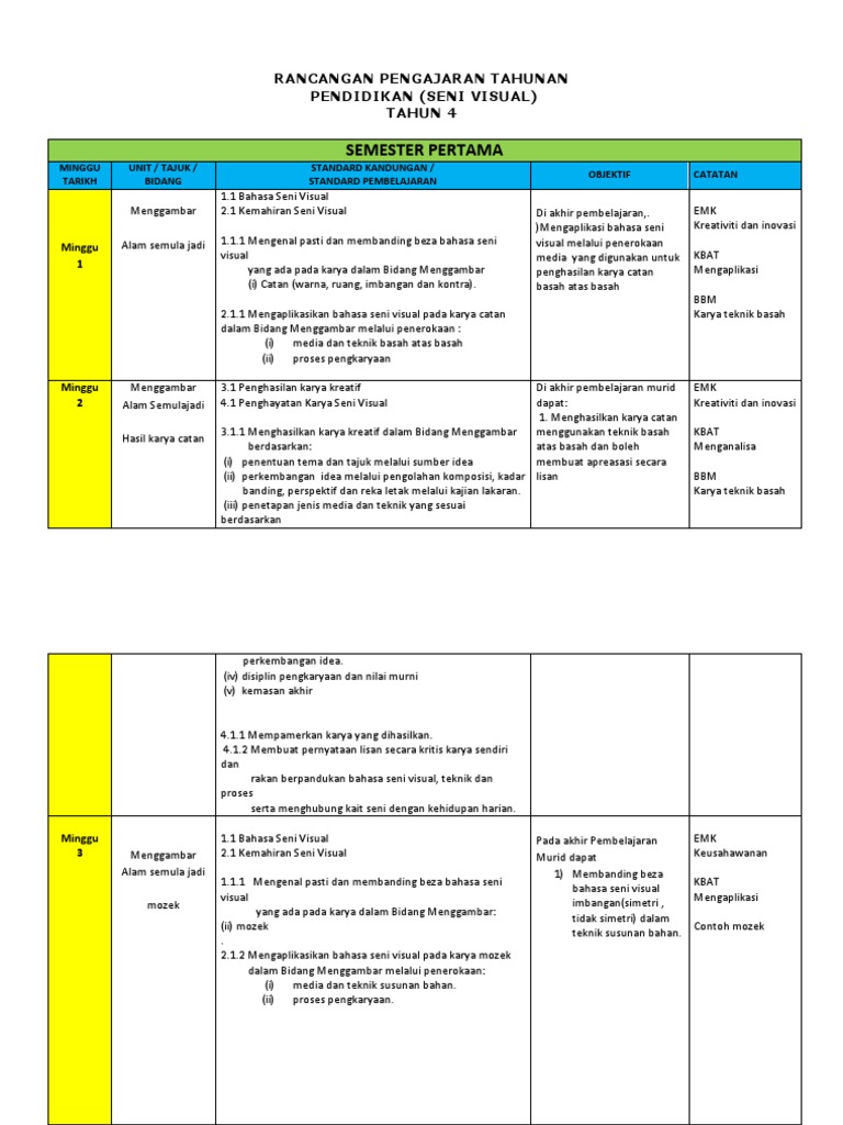 Panduan Pengajaran Pendidikan Seni Visual Thn 4 Pdf Document