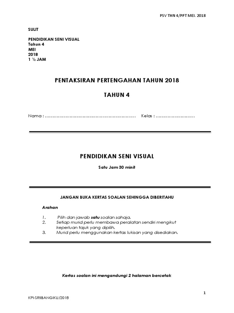 Rpt Pendidikan Seni Visual Tahun 4