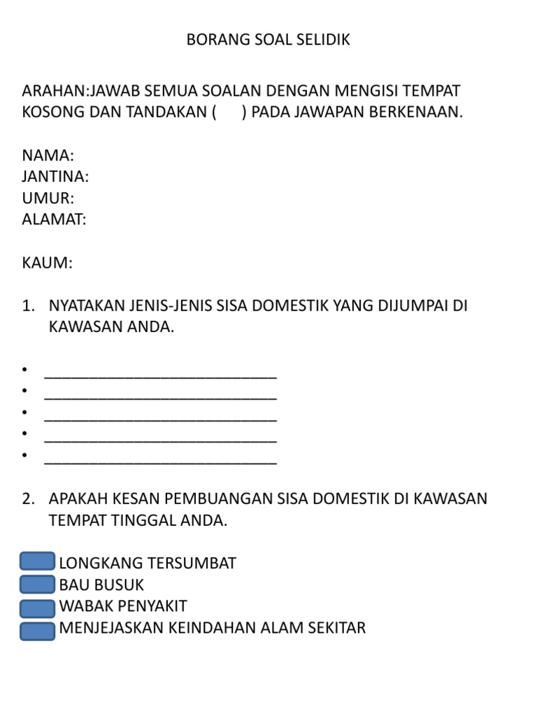 Contoh Soalan Soal Selidik Sisa Domestik A Soalan