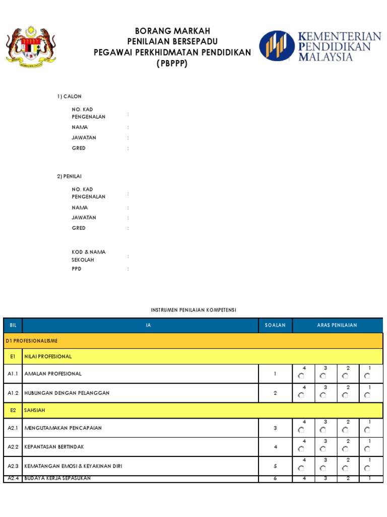 Penilaian Bersepadu Pegawai Perkhidmatan Pendidikan Pbppp Pdf Download Gratis