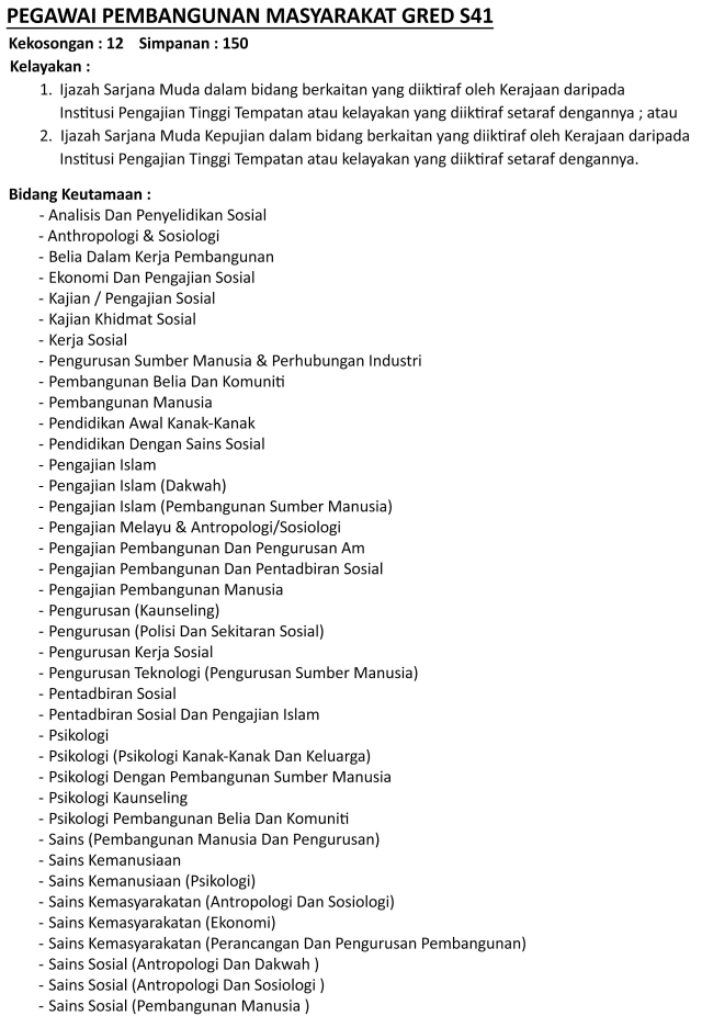 Permohonan Jawatan Penolong Pegawai Pembangunan Masyarakat S29 Kemas Jobcari Com Jawatan Kosong Terkini