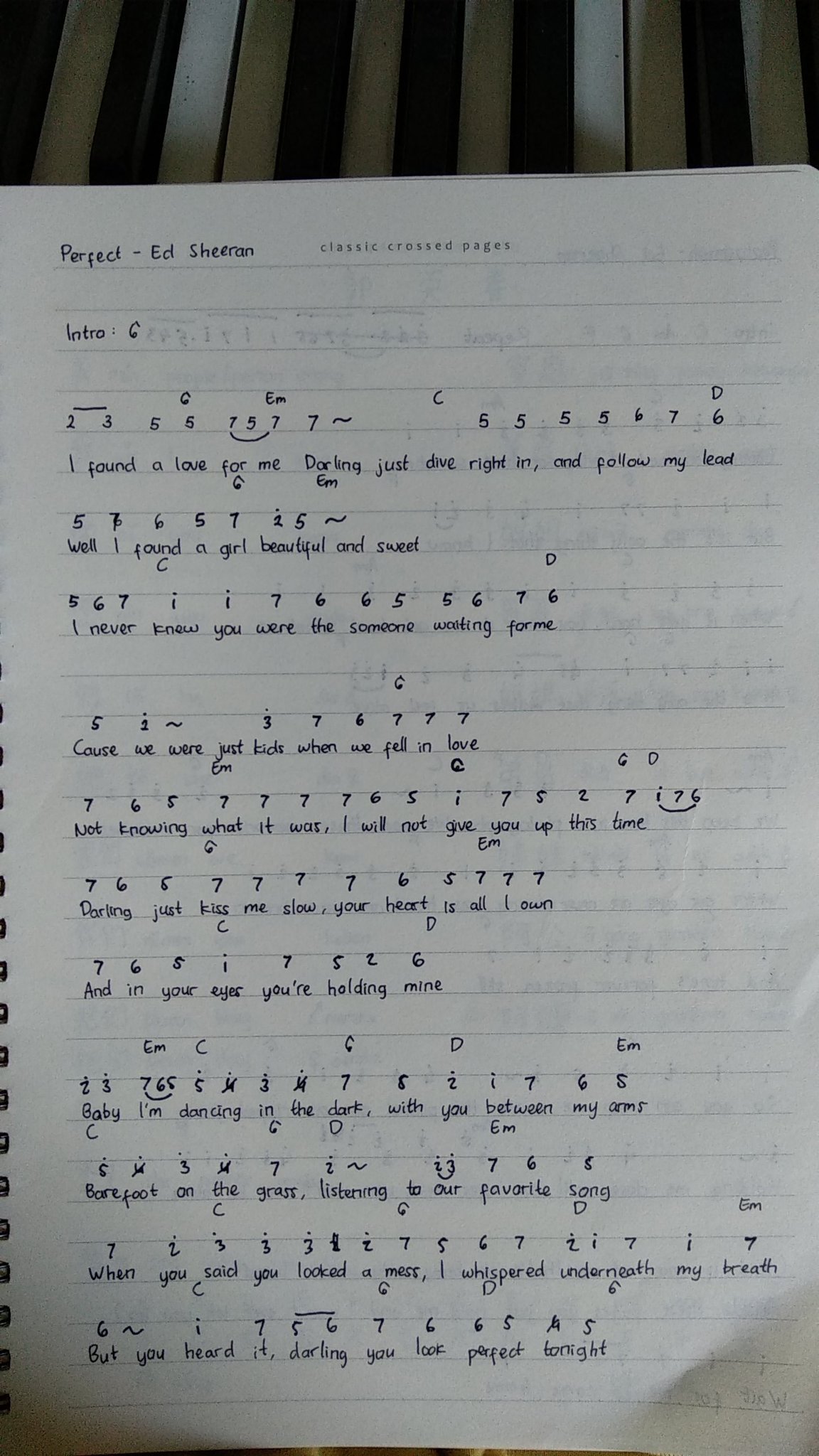 Perfect Notes Lyrics And Chords For Vocal With Accompaniment Playyournotes
