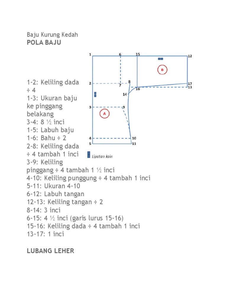 Tajuk Pola Baju Kurung Kedah Credit Belajar Menjahit Facebook