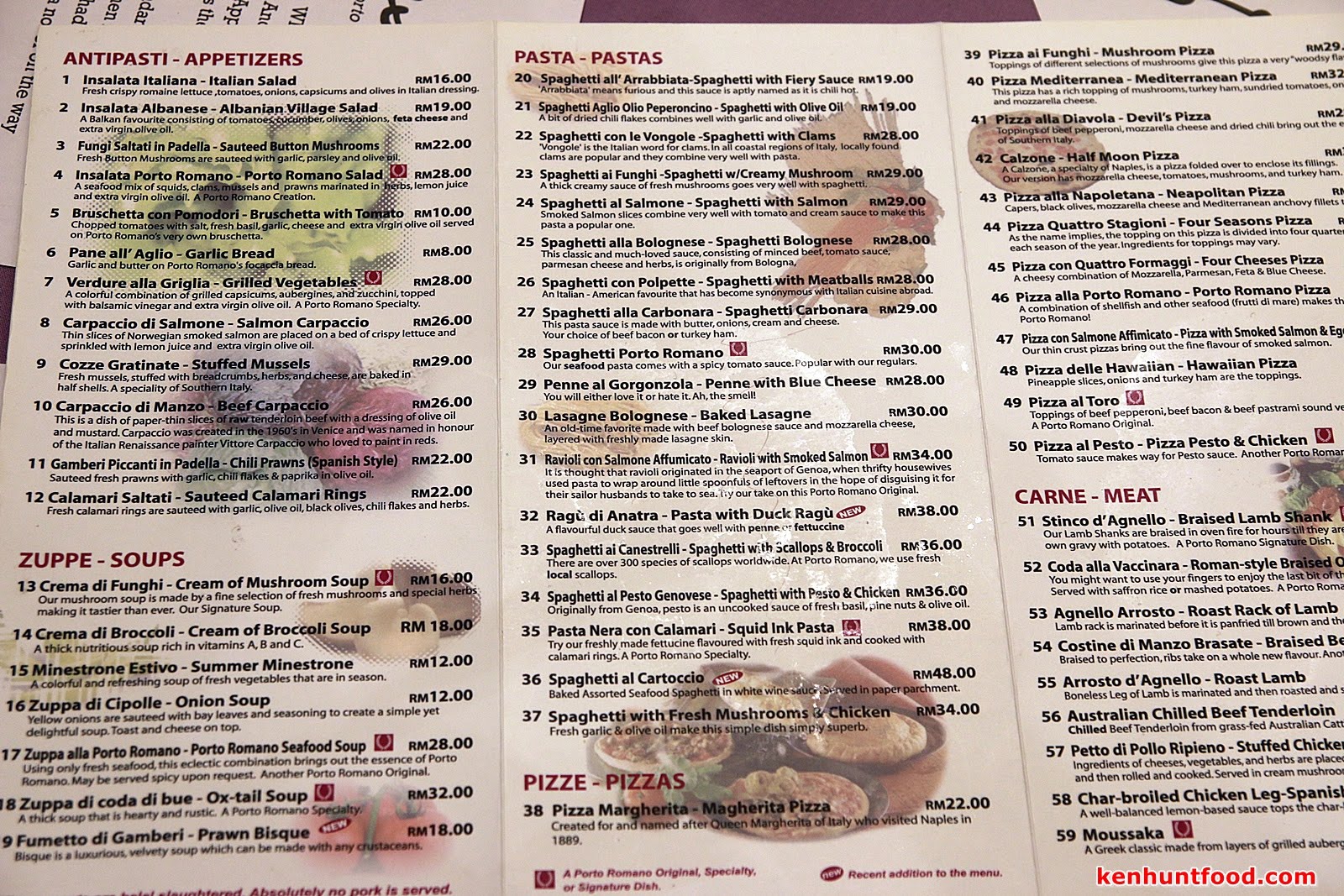Menu Porto Romano Malaysia Food Restaurant Reviews