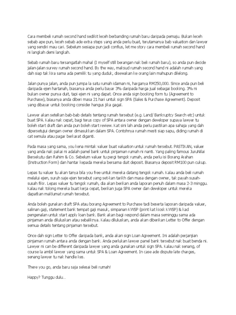 Cara Membeli Rumah Second Hand Sedikit Leceh Berbanding Rumah Baru Daripada Pemaju