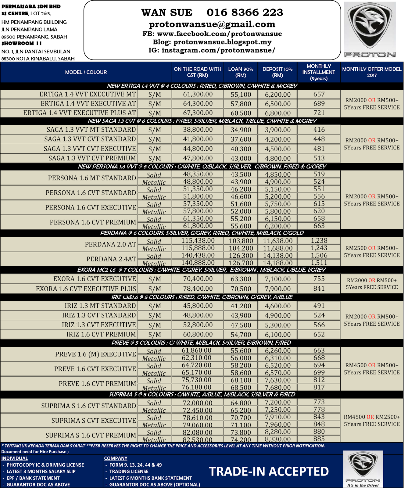 Latest P R I C E L I S T Monthly Offer Protonwansue Kota Kinabalu Facebook