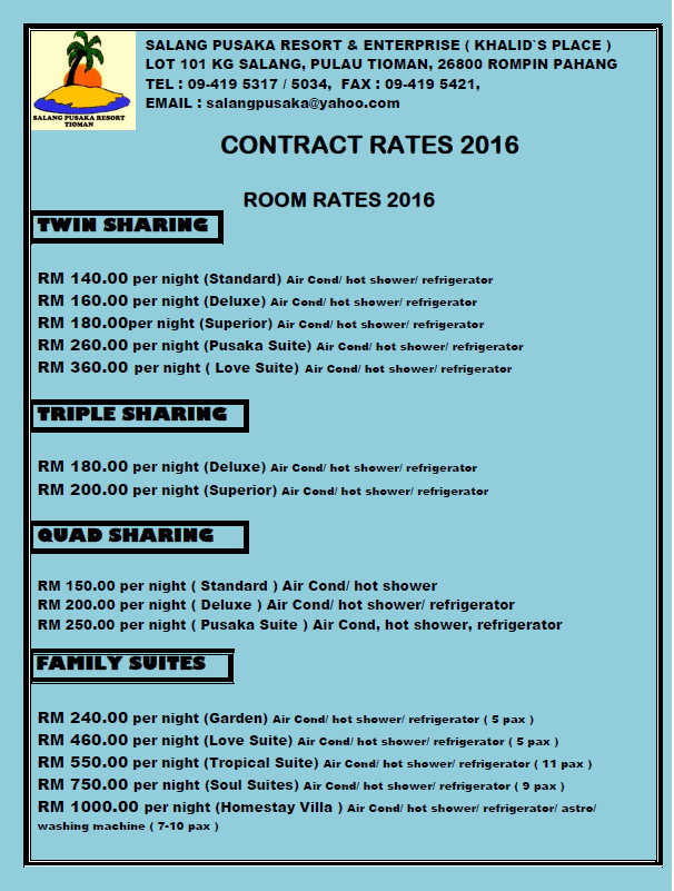 Packages Rates Salang Indah Tioman