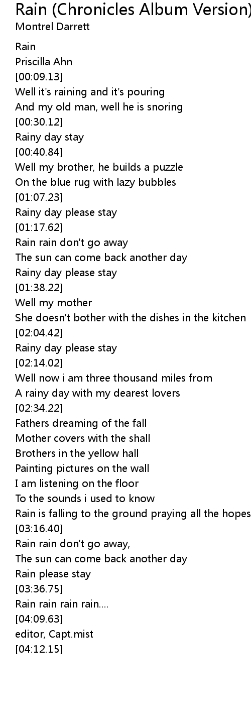 Rain Lyrics By Priscilla Ahn Well It S Raining And