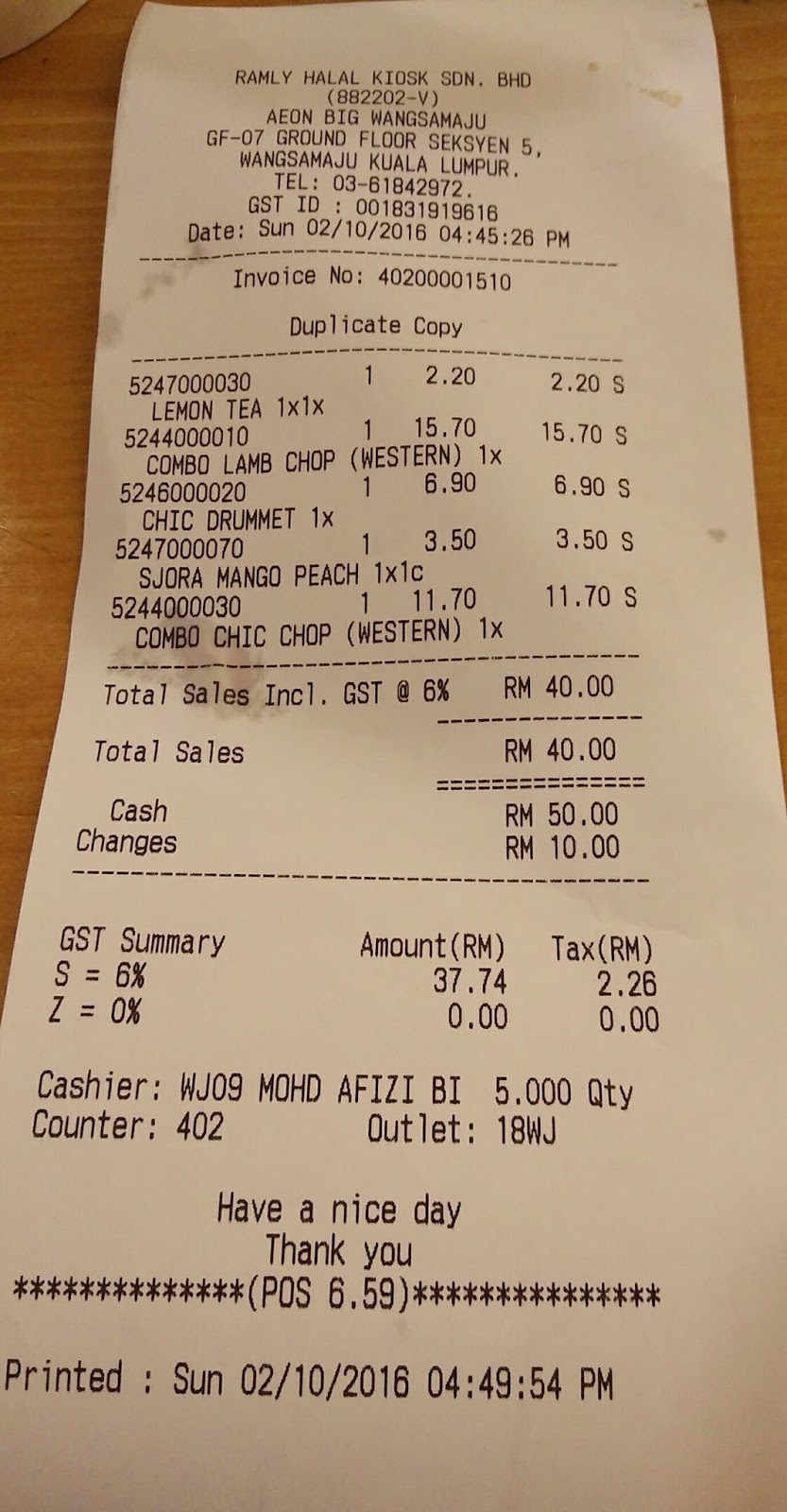 Makan Di Ramly Halal Kiosk Aeon Big Wangsamaju