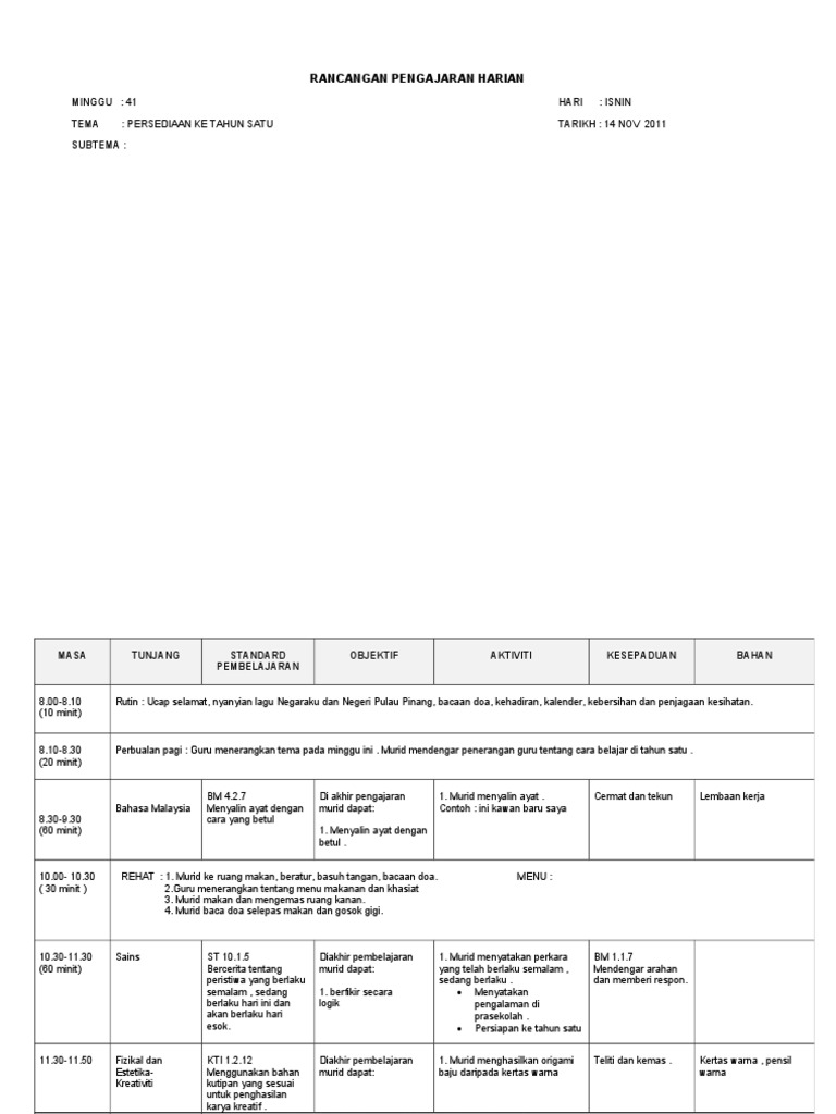 Rancangan Pengajaran Harian Prasekolah